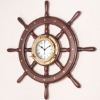 Ship Wheel Clock Item No.: GL193-175C -------------------- Description: 1)Classic nautical style design 2) The ship wheel is made of solid wood& MDF with mahogany finish 3) With 175mm diameter alloy porthole bezel, will never discolor or tarnish 4) High-quality quartz clock movement, high precision barometer movement is optional 5) Wall mount --------------------Item Size: Dia:592, D:84 mm